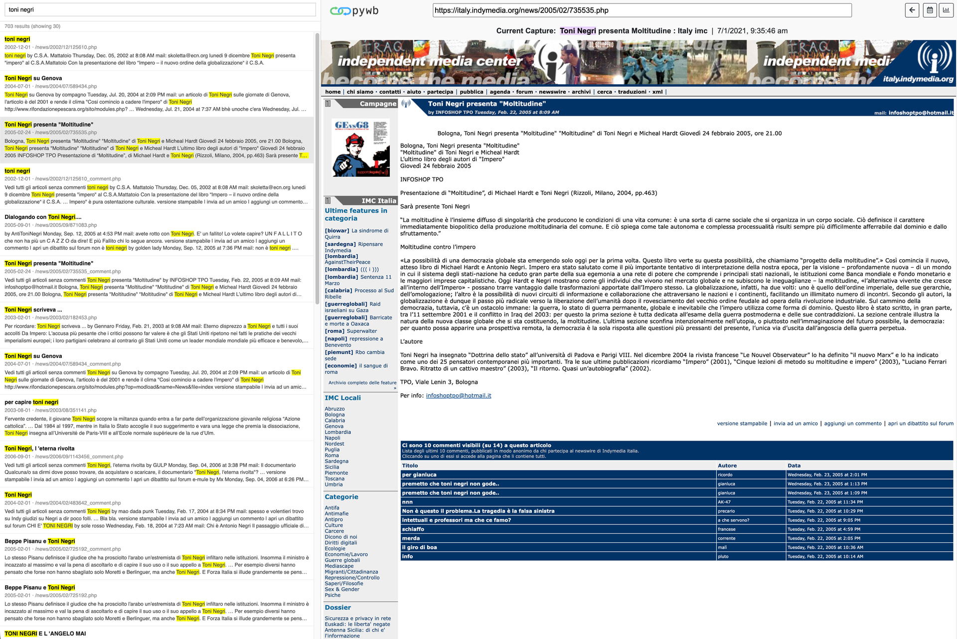 I have a basic search application where results open in a side iframe powered by Pywb.